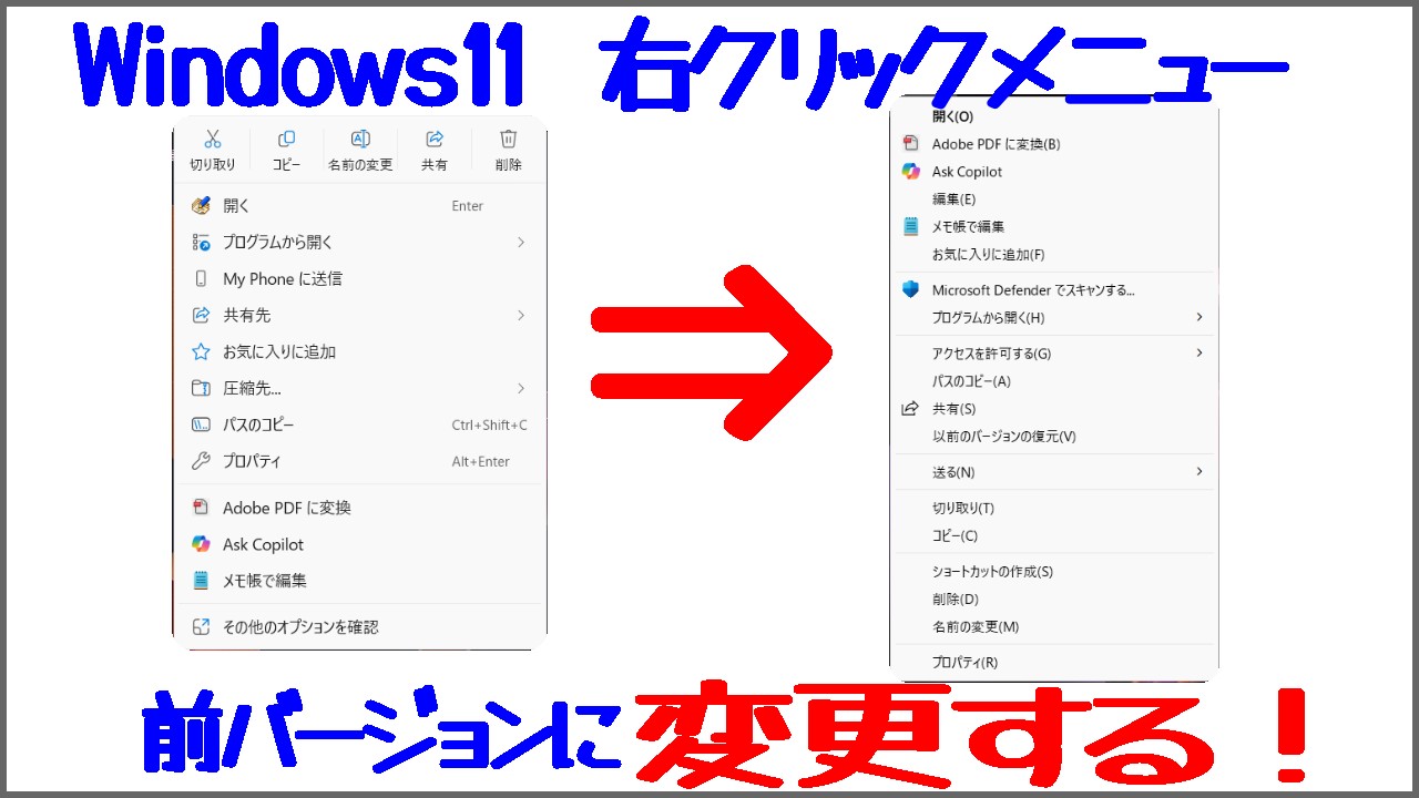 Windows11になって右クリックメニューが簡素化され、使いにくいと感じている方も多いと思いますが、レジストリを編集することで右クリックメニューを以前の仕様に戻すことができます。